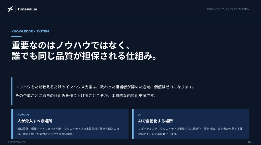 事業会社が自社のマーケティング機能を持ち、自走できる組織になること。